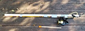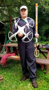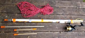 This time the dowels with the weight on the end were easier to aim and were dropping out of the canopy better than just the weight I was trying before, most shots were getting close, but just a foot or so short of the mark. Plus I was getting eaten by mosquitoes and was running out of fishing line, you use up the fishing line when you tie the rope on and try and pull the rope up, the fishing line then becomes a tangled mess at your feet. So it dawned on me that my dowel projectiles needed to be longer so that I could pull the latex tubing back farther getting more lift. So I went home and made some longer dowel projectiles and added some more fishing line to my reel, figuring I would try one more time the next morning and if I couldn’t get it then I would just leave my drone in the forest canopy.